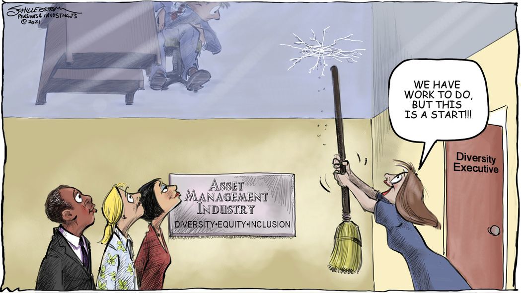 A busy 2021 provided lots of fodder for P&I editorial cartoonist Roger Schillerstrom, including ongoing efforts to adjust to a new, hybrid way of work. But low interest rates, managers’ DEI efforts and quantifiable ESG metrics also were on the editors’ minds. What follows are some of Mr. Schillerstrom’s top illustrations of the year. See you in 2022!